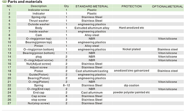 SAT系列氣動執(zhí)行器以SR系列氣動執(zhí)行機構(gòu)為例在彈簧復(fù)位的應(yīng)用中,輸出力矩是在兩個不同的操作過程中所得,根據(jù)行程位置,每一次操作產(chǎn)生兩個不同的力矩值。彈簧復(fù)位執(zhí)行機構(gòu)的輸出力矩由力(空氣壓力或彈簧作用力)乘上力臂所得第一種狀況:輸出力矩是由空氣壓力進入中腔壓縮彈簧后所得,稱為"空氣行程輸出力矩"在這種情況下,氣源壓力迫使活塞從0度轉(zhuǎn)向90度位置,由于彈簧壓縮產(chǎn)生反作用力,力矩從起點時最大值逐漸遞減直至到第二種狀況:輸出力矩是當(dāng)中腔失氣時彈簧恢復(fù)力作用在活塞上所得,稱為"彈簧行程輸出力矩"在這種情況下,由于彈簧的伸長,輸出力矩從90度逐漸遞減直0度如以上所述,單作用執(zhí)行機構(gòu)是根據(jù)在兩種狀況下產(chǎn)生一個平衡力矩的基礎(chǔ)上設(shè)計而成的。如圖11所示。在每種情況下,通過改變每邊彈簧數(shù)量和氣源壓力的關(guān)系(如每邊2根彈簧和5.5巴氣源或反之),有可能獲得不平衡力矩 在彈簧復(fù)位應(yīng)用中可獲得兩種狀況:失氣開啟或失氣關(guān)閉。在正常工作條件下,彈簧復(fù)位執(zhí)行機構(gòu)的推薦安全系數(shù)為25-50%